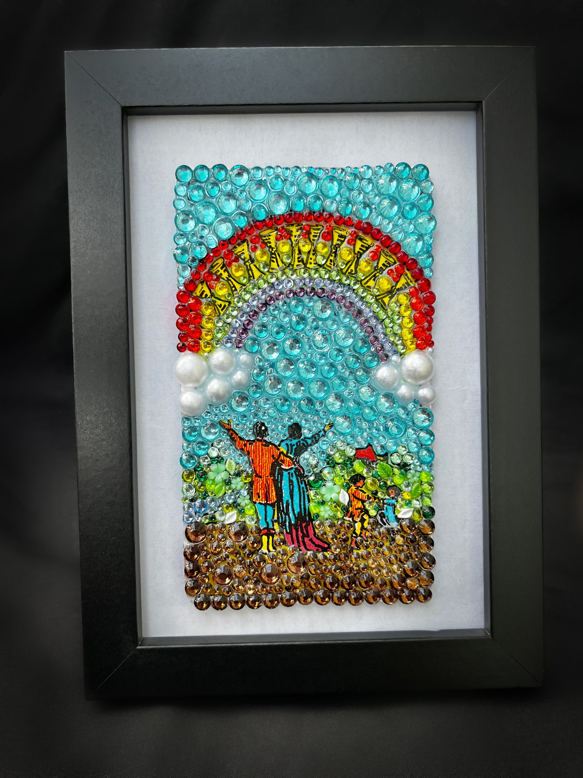 I create unique, custom-made tarot cards adorned with a variety of gems in different shapes, sizes, and colors. Each card is crafted to order and no two cards will be alike. These cards are distinct and one-of-a-kind, radiating the spiritual energy represented by the card itself. Each tarot card includes a Rider-Waite tarot card with hand-placed gems and comes beautifully framed.